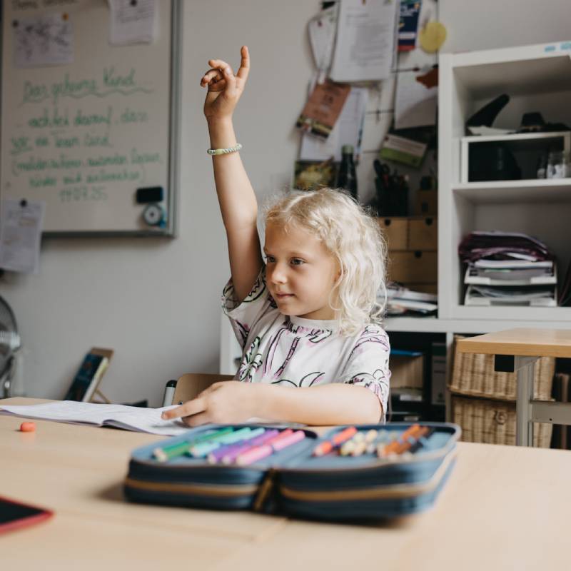 Wir sind eine Ganztagsschule von 8 bis 16 Uhr. Nur am Mittwoch endet der Schultag bereits um 13 Uhr. Jeder Schultag beginnt in der ersten Stunde mit einem Morgenkreis, der das Ankommen leicht macht und auf den Schultag einstimmt.